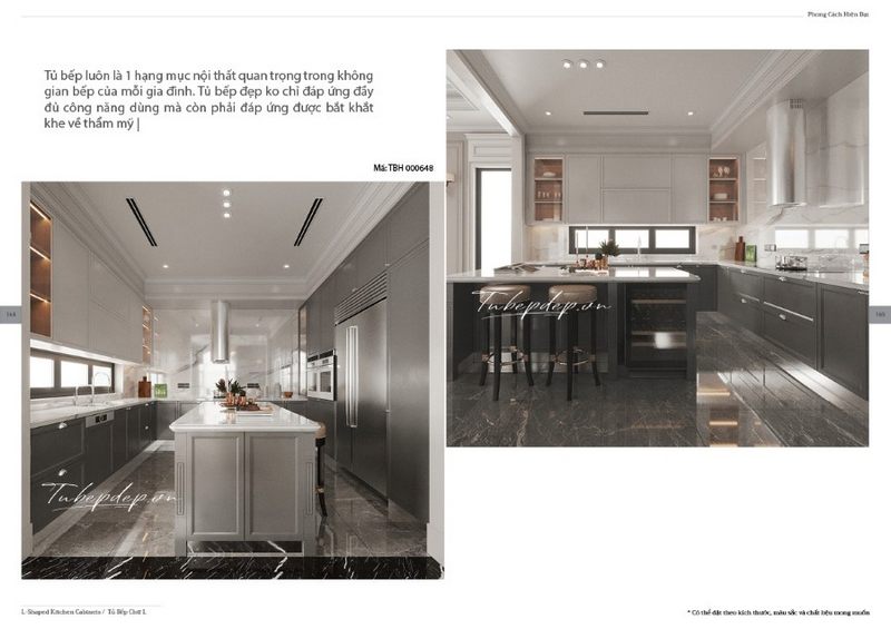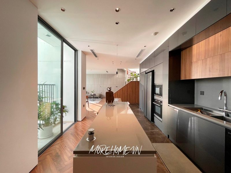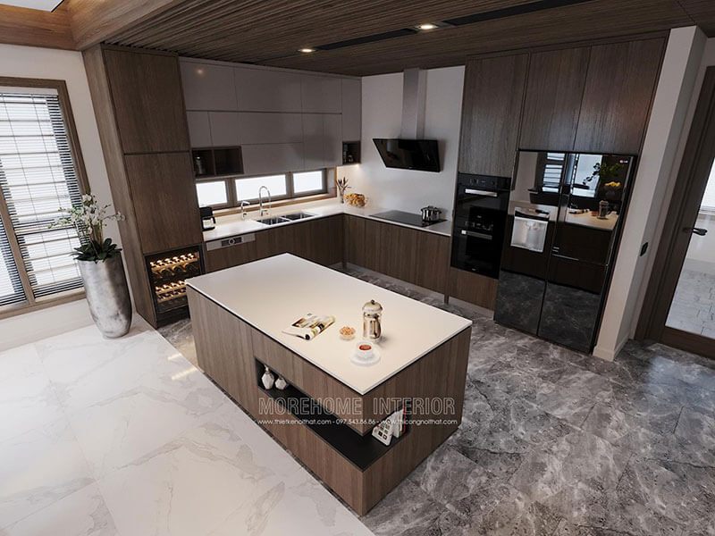 Bố trí nội thất phòng bếp biệt thự cao cấp phong cách hiện đại, tinh tế