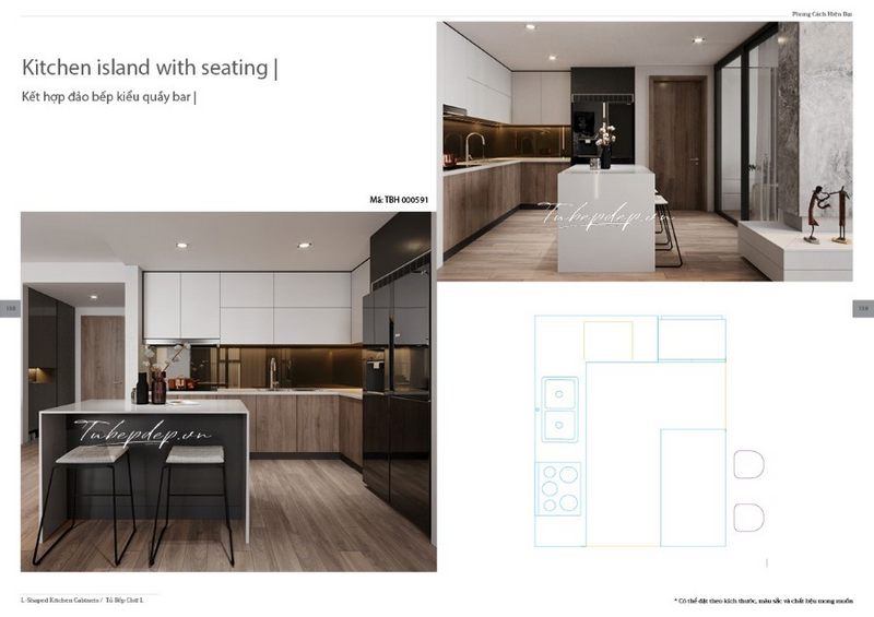 Mẫu thiết kế phòng bếp liền bếp khu vực ăn uống thật độc đáo lạ mắt. Nội thất tại không gian này được bố trí rất hợp lý tạo cho không cảm thấy ngột ngạt chật chội