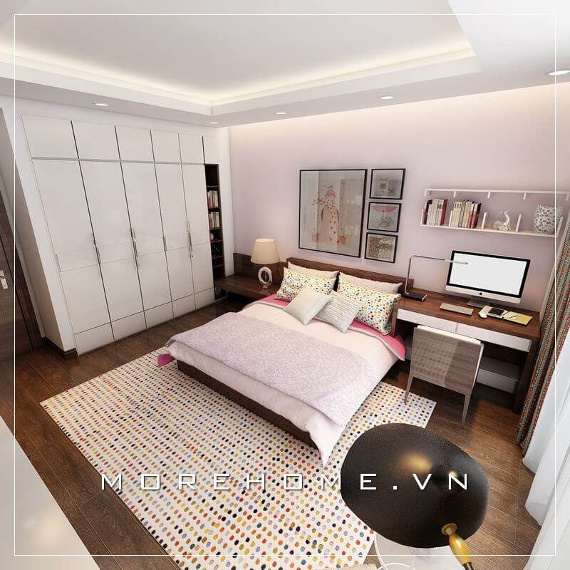 Tủ quần áo hiện đại được thiết kế âm tường tích hợp kệ tủ ngay cạnh đầy tiện nghi, gọn gàng