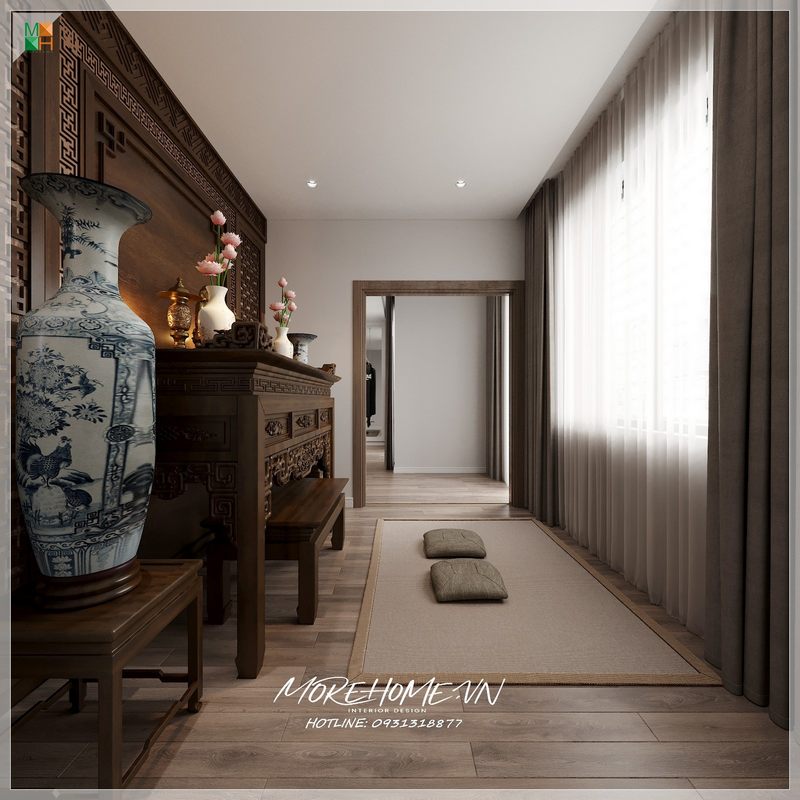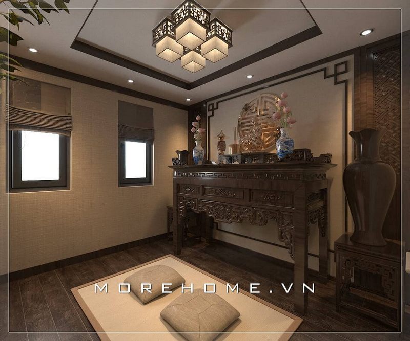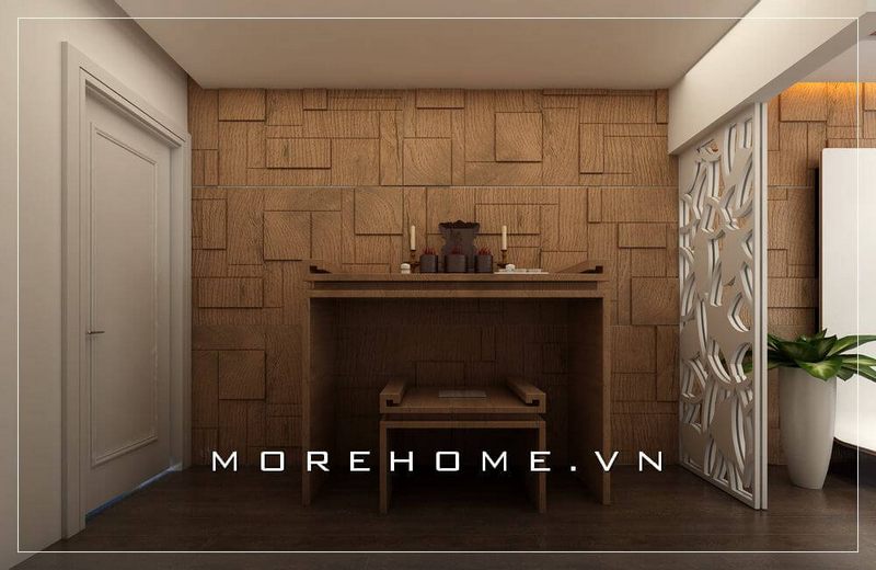 Với đôn thờ bằng gỗ óc chó hình dạng giống như chiếc ghế ngồi không tựa thông thường là nội thất trang trí thêm cho phòng thờ