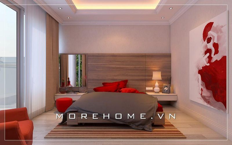Thiết kế phòng ngủ hiện đại ấn tượng, nội thất gỗ tự nhiên sang trọng, ấn tượng mang đến sự thoải mái cho gia chủ