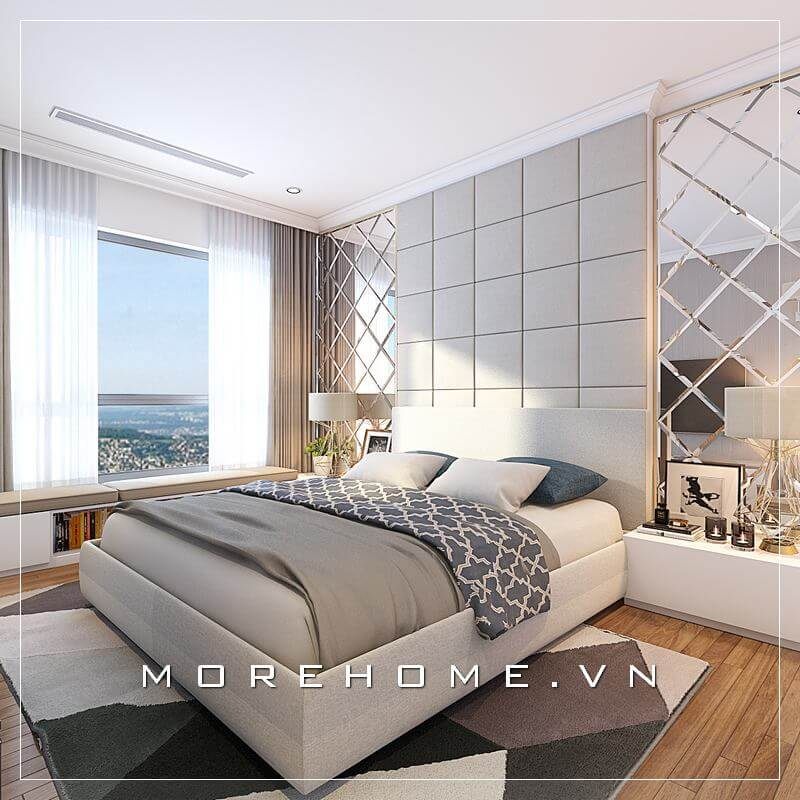 Mang phong cách thiết kế hiện đại chiếc giường ngủ đóng vai trò là điểm nhấn mang đến sự tiện nghi và sang trọng cho không gian căn phòng.