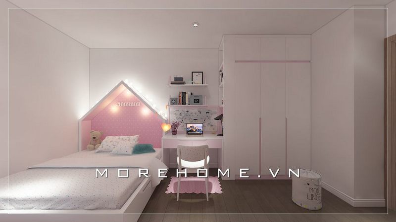 Thiết kế phòng ngủ bé gái hiện đại, việc tận dụng ánh sáng tự nhiên bên ngoài giúp cho căn phòng luôn sinh động, tươi mới