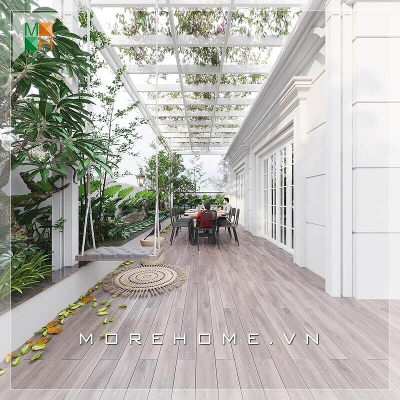 Mẫu thiết kế sân vườn của biệt thự rộng phục vụ những sinh hoạt ngoài trời tiện lợi, là không gian thú vị cho tất cả thành viên trong gia đình.
