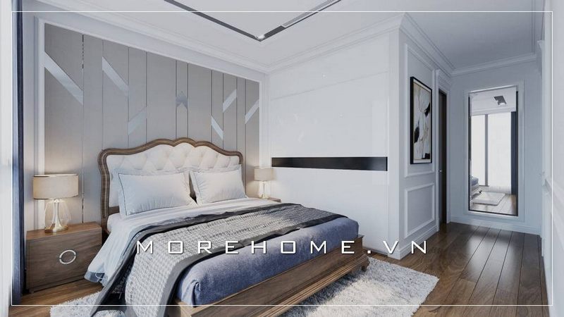 Nếu bạn muốn sử dụng lát sàn bằng gỗ nhưng không muốn căn phòng của mình quá u tối bởi nội thất tối màu, hãy để Morehome gợi ý cho bạn một mẫu phòng ngủ tông trắng hồng dịu dàng này nhé
