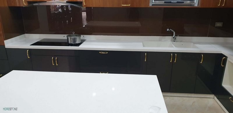 Biến không gian nội thất phòng bếp đẹp hơn với mẫu đá ốp bàn bếp nhân tạo tạo màu trắng vân mây nhập khẩu