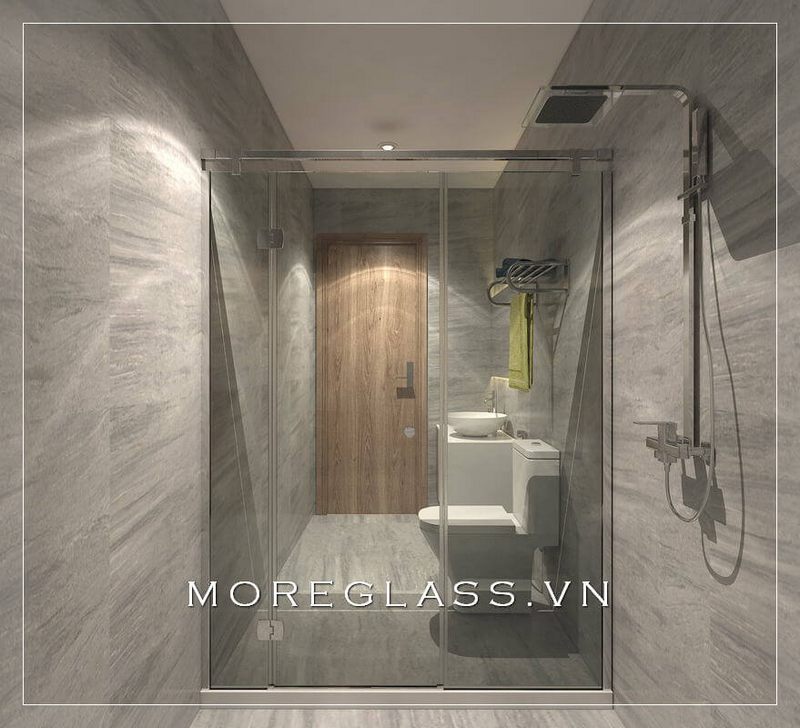 Mẫu thiết kế nhà tắm kính đẹp với kính cường lực trong suốt mang vẻ đẹp sang trọng, tinh tế mà không gây cảm giác bí bách cho phòng tắm nhỏ
