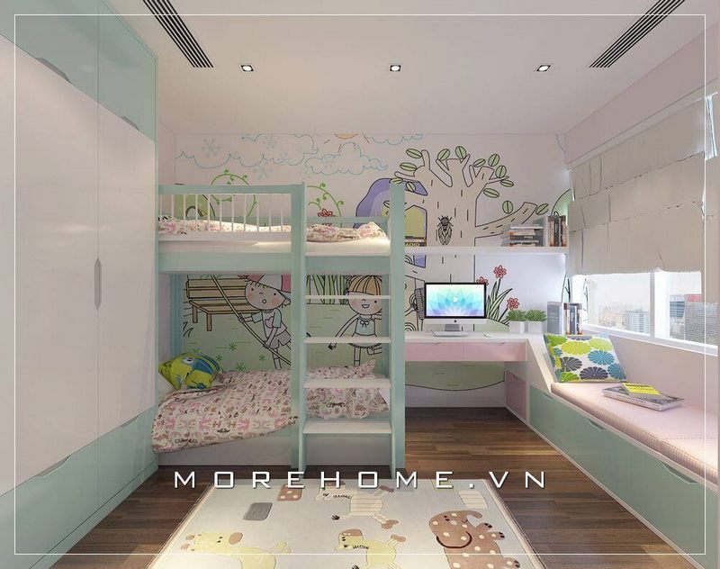 Nếu phòng ngủ nhà bạn nhỏ, thì lựa chọn giường tầng chính là giải pháp tiết kiệm diện tích nhất tại phòng ngủ con, các bé sẽ có thêm nhiều không gian nghỉ ngơi và riêng tư hơn