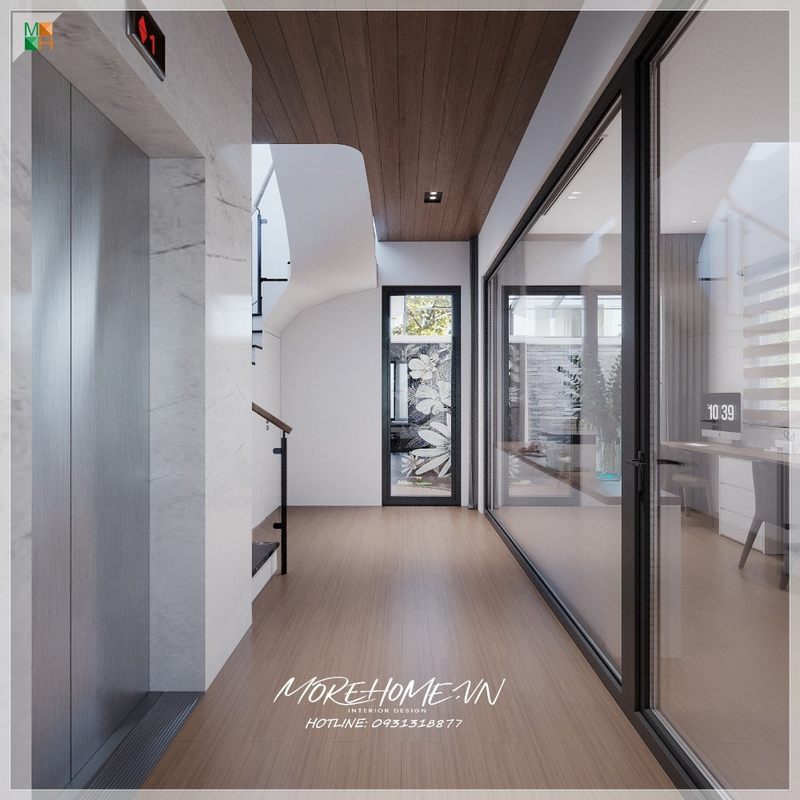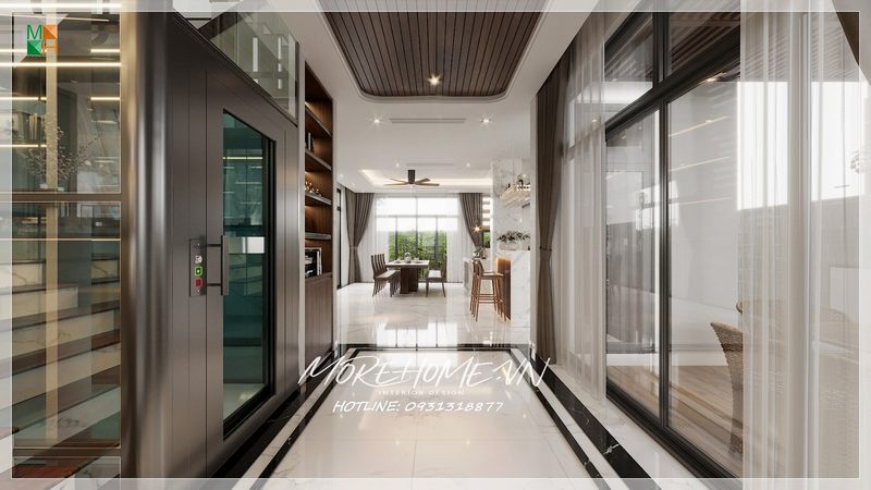 Mang lại cho không gian hành lang thông thoáng mát mẻ nhờ cửa kính hiện đại đón nhận nguồn ánh sáng và bầu không khí tự nhiên